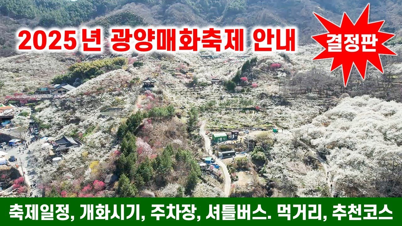 [3] 티스토리 - 2025 광양 매화축제 완벽 가이드: 개화시기,일정 및 입장료, 숙소 ... (https://filmk.tistory.com/entry/2025%EA%B4%91%EC%96%91%EB%A7%A4%ED%99%94%EC%B6%95%EC%A0%9C%EA%B0%9C%ED%99%94%EC%8B%9C%EA%B8%B0)