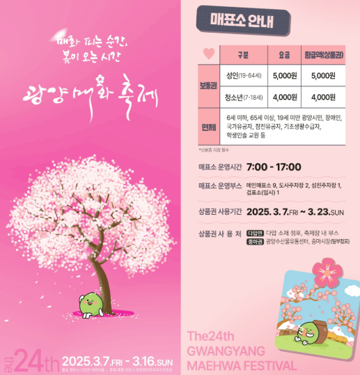 [4] NAVER - 25년 24회 광양 매화축제 날짜, 일정, 위치, 기본정보 ... (https://blog.naver.com/yak-bang/223780649293?viewType=pc)