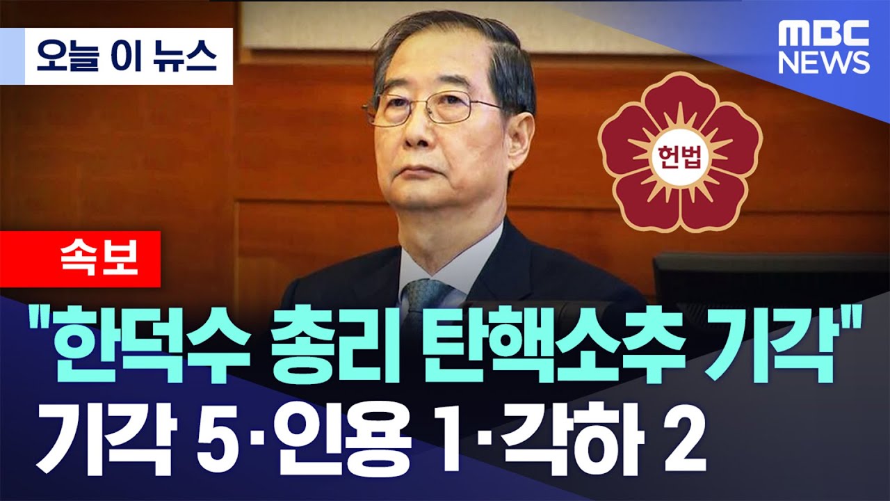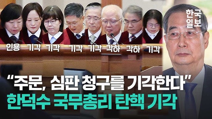 [1] 중앙일보 - [속보] 헌재, 한덕수 총리 탄핵 기각…기각 5 각하 2 인용 1 (https://www.joongang.co.kr/article/25322874)