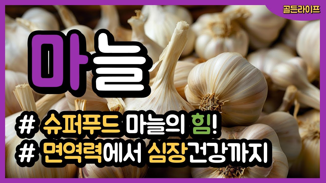 [4] YouTube · 골든라이프 - 슈퍼푸드 마늘/알리신/놀라운 효능/면역력에서 심장건강까지/ ... (https://www.youtube.com/watch?v=KlP0yy9Ps3w)