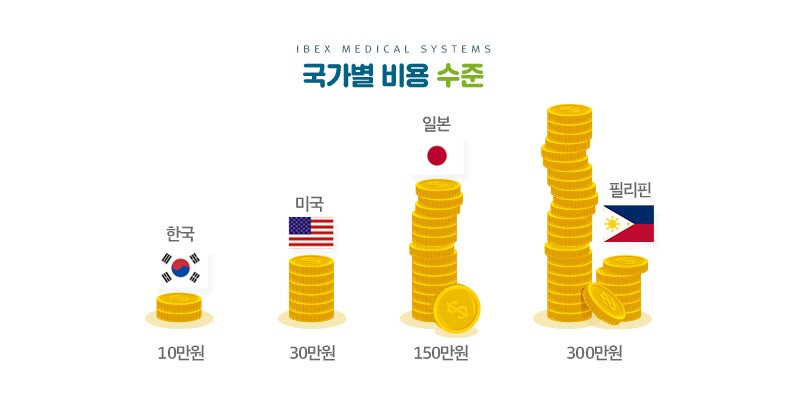 이 이미지는 각국의 의료비용을 비교한 것으로, 한국의 비용이 가장 낮다는 것을 보여줘요.