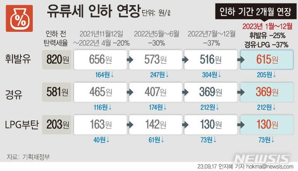 [1] 노컷뉴스 - 유류세 인하 연장…휘발유 10%·경유 15%로 인하폭 축소 (https://www.nocutnews.co.kr/news/6328137)