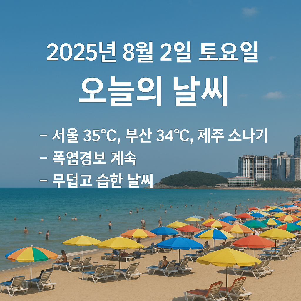 🌞 2025년 8월 2일 토요일 – 폭염 속 소나기 주의보