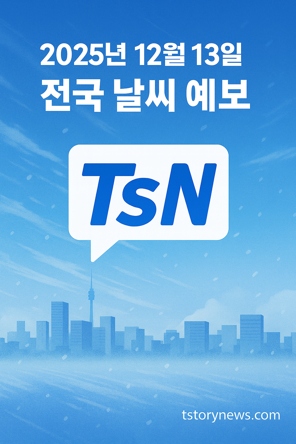 **2025년 12월 13일(토요일)**은 강한 북서풍이 유입되며 전국 대부분 지역에서 기온이 큰 폭으로 떨어지는 초겨울 한파 전조 현상이 나타나겠습니다.